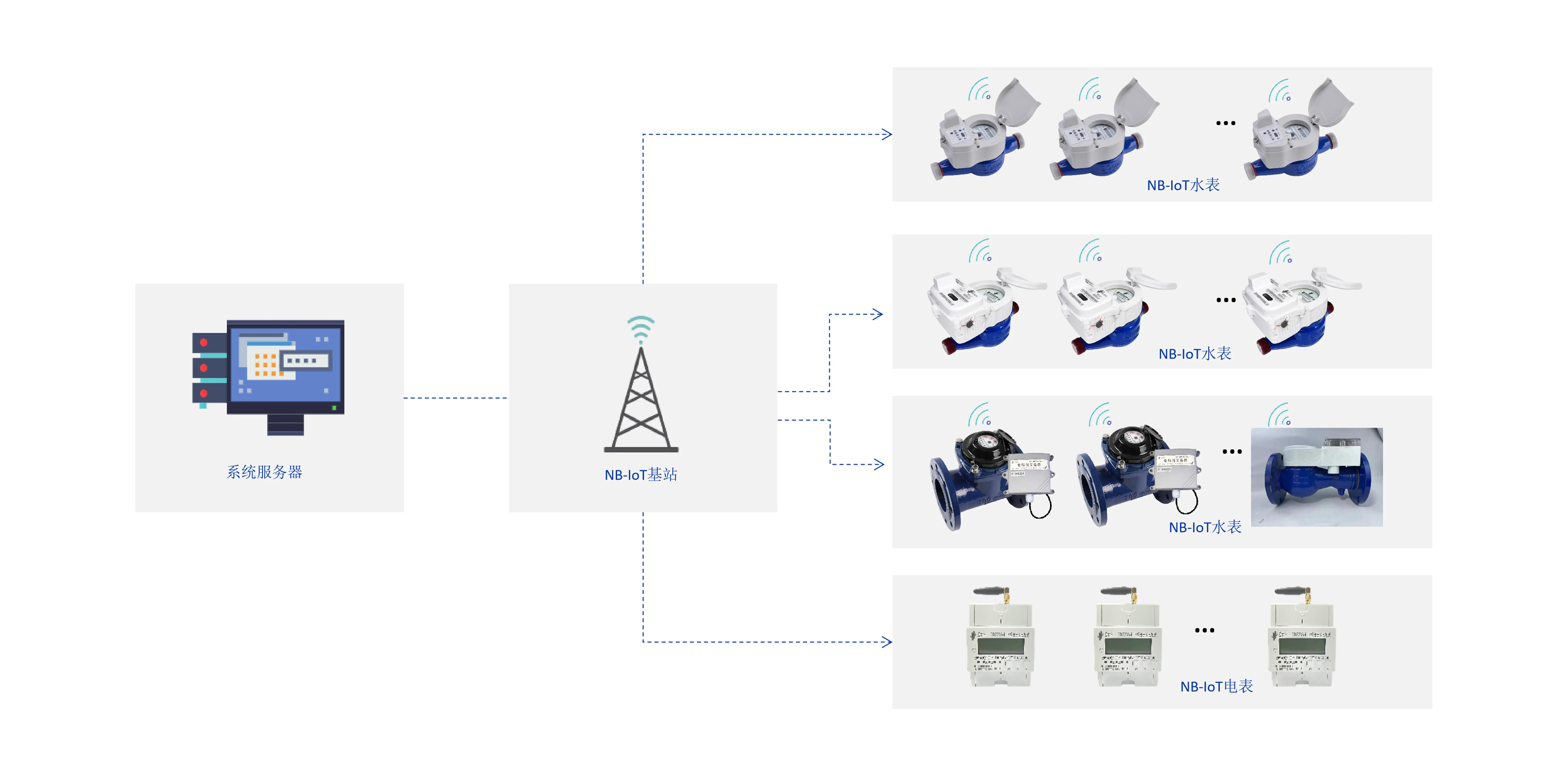 NB-IoT抄表方案不受安装距离限制,只要安装位置有基站就能通讯,都可实现远程抄表。