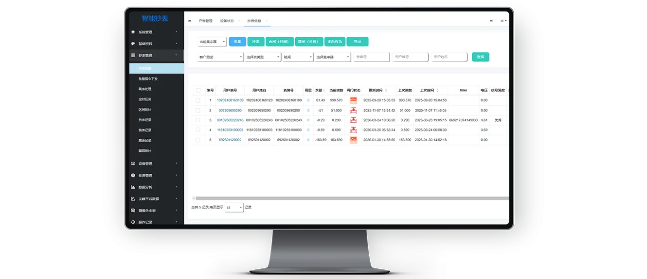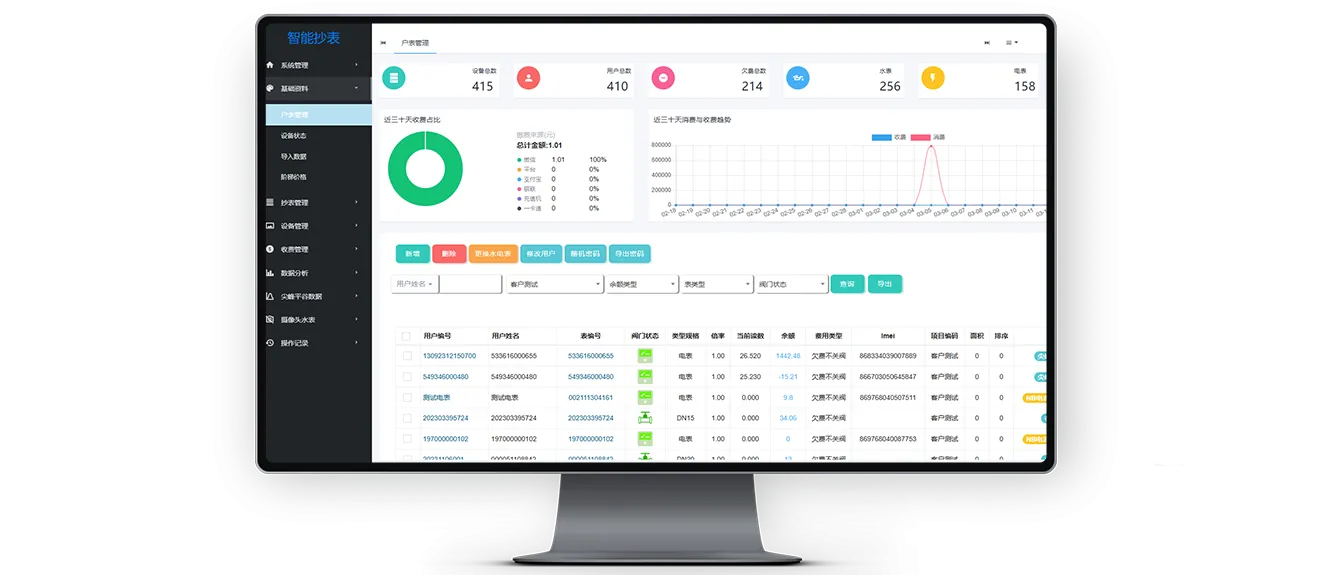 统一集中管理智能水电表设备,在线监控运行状态支持设备档案维护与故障报修,提升运维管理效率