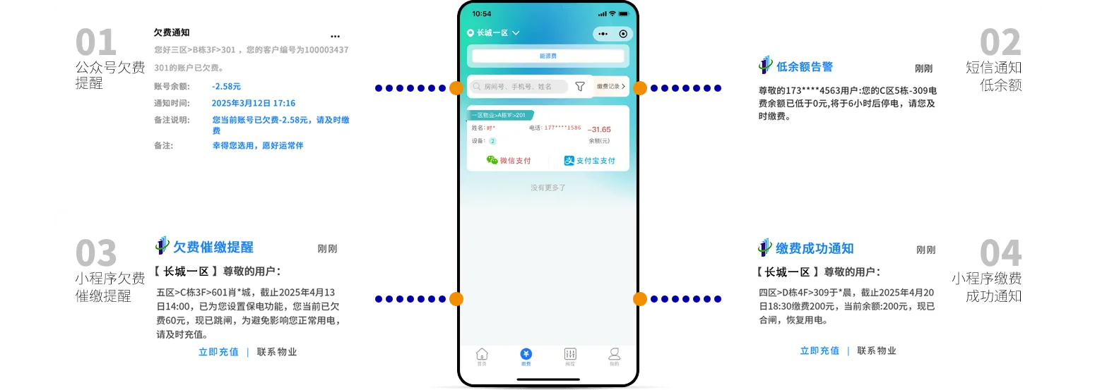 智能监测欠费状态自动提醒,多渠道及时推送通知规范高效完成费用催缴,有效降低拖欠提升回款率